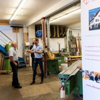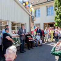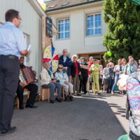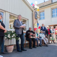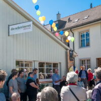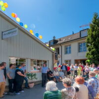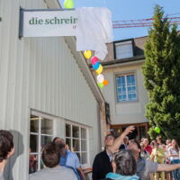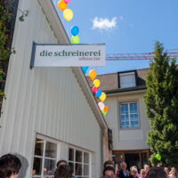 Am 24.05.2014 war es dann soweit: die schreinerei offene tür öffnete ihre Türen und ganz viele der Eingeladenen kamen, um diesen festlichen Anlass mit uns zu feiern. Gesegnet von herrlichem Wetter wurde das neue Geschäftsschild enthüllt, und verschiedene Redner blickten zurück auf die Geschichte der ehemaligen Schreinerei Fischerhus: Neben Gabriel Krettenauer taten dies Gemeindepräsident Hans-Jörg Wilde, Nachbar und Pfarrer Werner Vogt, der ehemalige Gründer der Schreinerei Fischerhus, Ernst Kipfer, sowie Peter Wirz, Präsident des Vereins offene Tür.